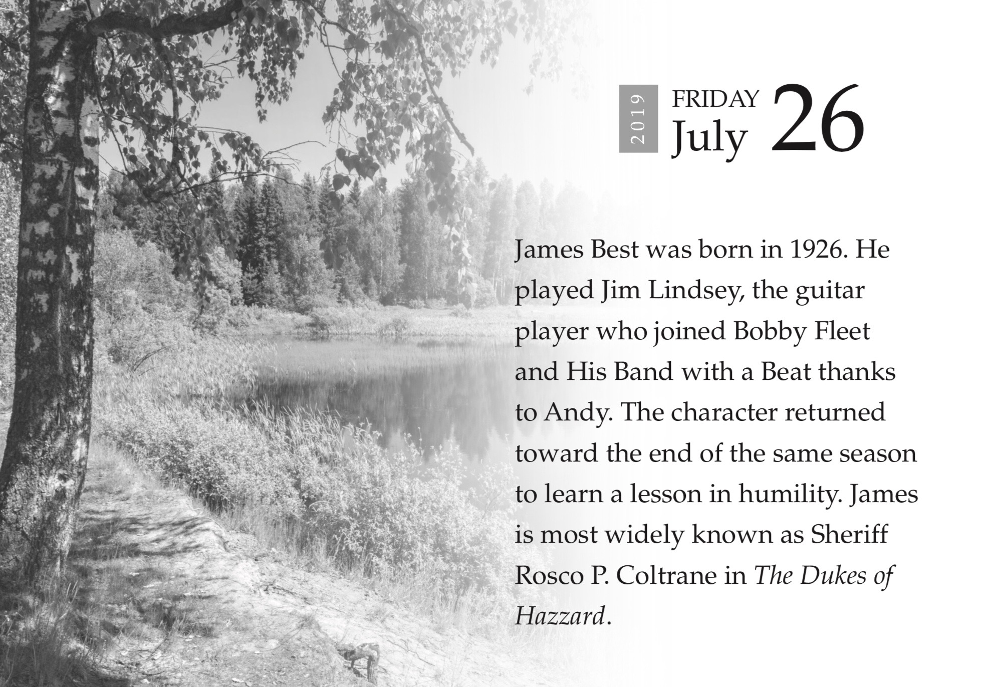 If you have read the other sections of our website or followed us on Facebook, you know that the daily desk calendar is not a random collection of 365 facts about the classic television series The Andy Griffith Show, but a collection of facts tied to each particular day.