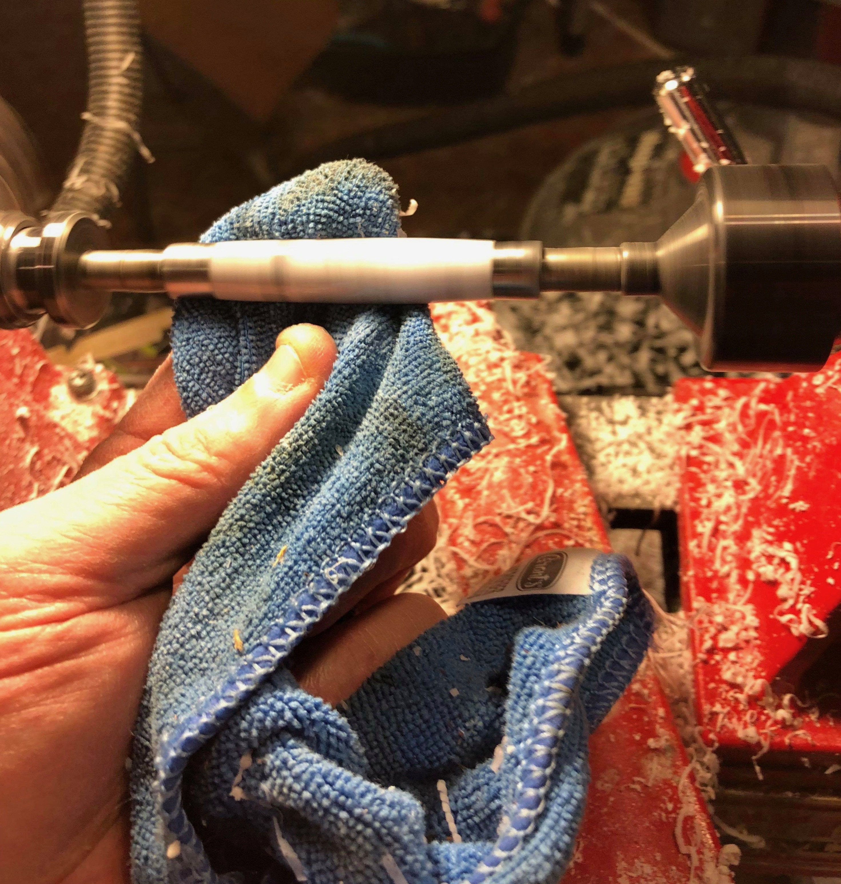 Buffing wheels are used to complete the finish. A jeweler’s wheel is used to remove any scratches that could have been missed with the plastic cleaner and to put a high shine on the blank. A second buffing wheel removes any residual cleaning compound and results in the final polish.