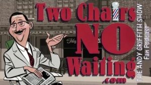 When I attended Mayberry Days in 2016, I gave Allan Newsome one of our chapter t-shirts. Allan is well-known in the Mayberry community as the tribute artist who acts as Floyd the barber at Mayberry events. Allan has often served as the Mayberry Deputy David Browning’s righthand man when David served as an emcee and has assumed many of David’s duties now that David is no longer attending Mayberry Days. Allan is also the podcaster who hosts the fan podcast called Two Chairs, No Waiting, the title of which is a reference to Floyd Lawson’s dream shop. He has been doing a weekly podcast since October 2008 and on October 16, 2018, posted his 5ooth episode. The gift of a shirt was just a small token of thanks to Allan for all he does to keep the Mayberry spirit alive.