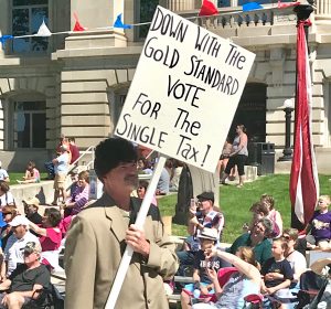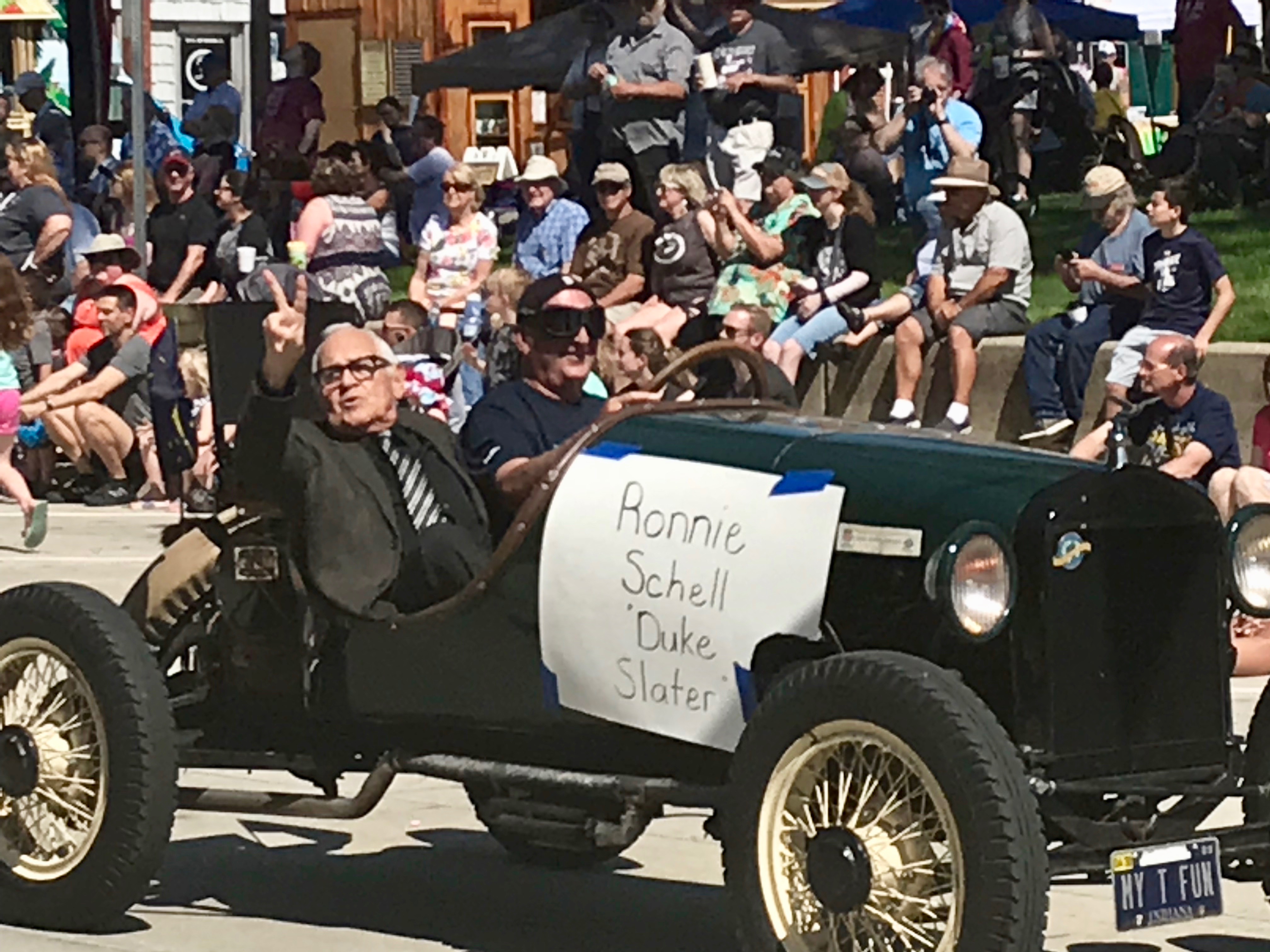My friend, Steve, helps with the organization of the festival. He decided to walk in the parade this year as the hermit Regis who came down from the hills to protest the gold standard in “Black Day for Mayberry.” Steve apparently felt he needed more hair to pull off Regis so it looks like he borrowed Mr. Schwamp’s toupé.