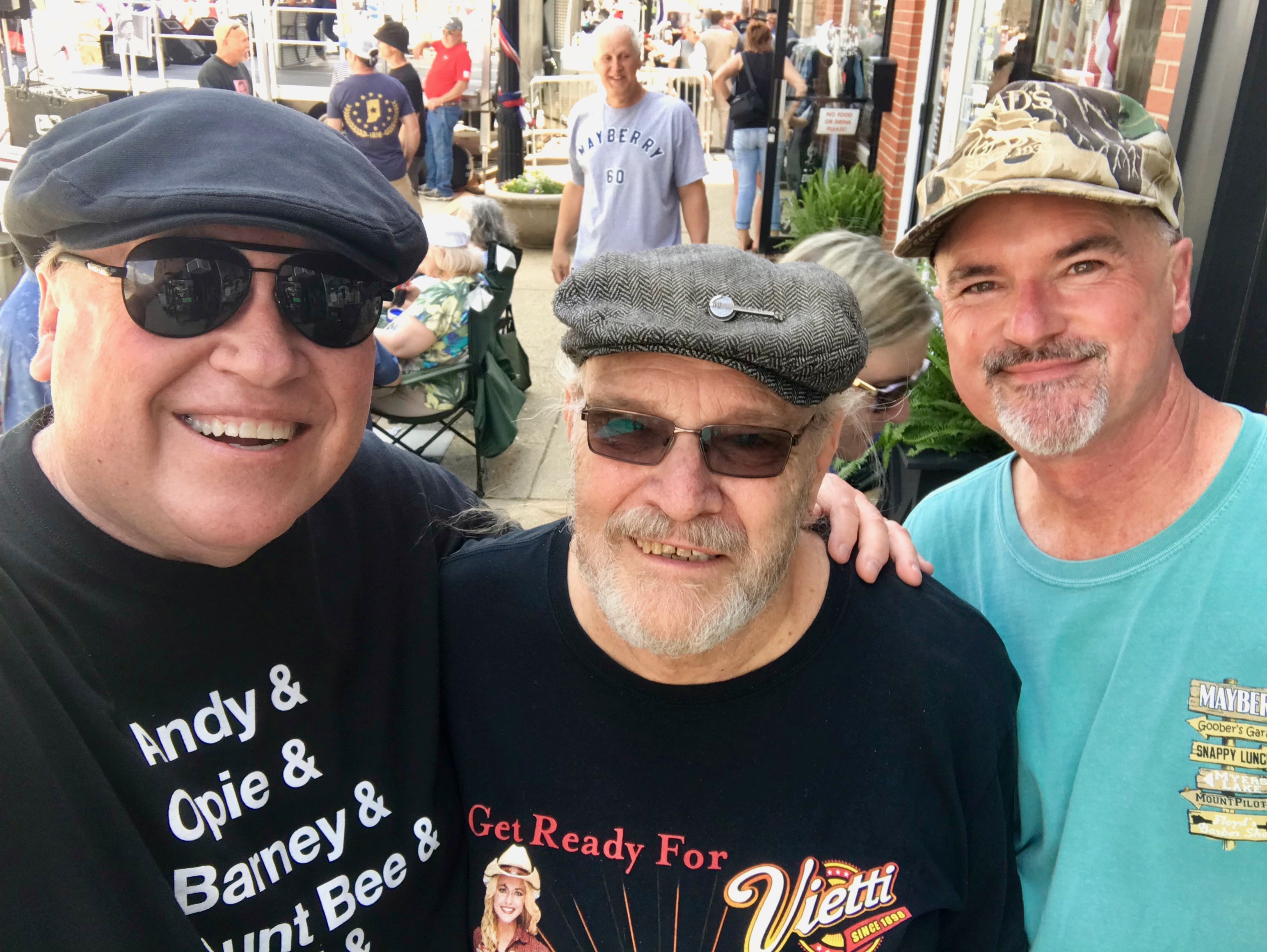 While I usually participate, albeit not that successfully, in the trivia contest since the small entrance fee goes to support the festival, I missed the beginning of it this year. In the course of administering our Mayberry Facebook group, The Gomer and Goober Pyle Comic Book Literary Guild and my activities in the Mayberry community, there are a number of people I have “met” online but never got the chance to actually meet in person. One of those people is Denny Reese who has written a book about Gomer Pyle-USMC that he hopes will be released next year. Denny asked me to contribute an essay for his book which I was happy to do. I had communicated with him many times through the internet and even spoken with him by phone on one occasion but had never actually met him. He sent me a message early afternoon that he was seated at The Mayberry Cafe so I went over to say hello. By the time I got back to the stage, they were several questions into the trivial contest so I was just an observer this year. Matt Hurley won the competition which was especially fun for me to see as Matt also was kind enough to review the upcoming Mayberry Firsts book for me.
