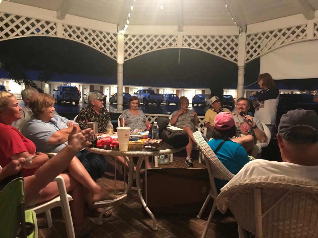 After dinner in the nearby town of Dobson, everyone returned to the Mayberry Motor Inn and joined those who were not with us for dinner. Fans gathered around the gazebo and enjoyed trivia led by Ken Junkin, the Otis tribute artist.