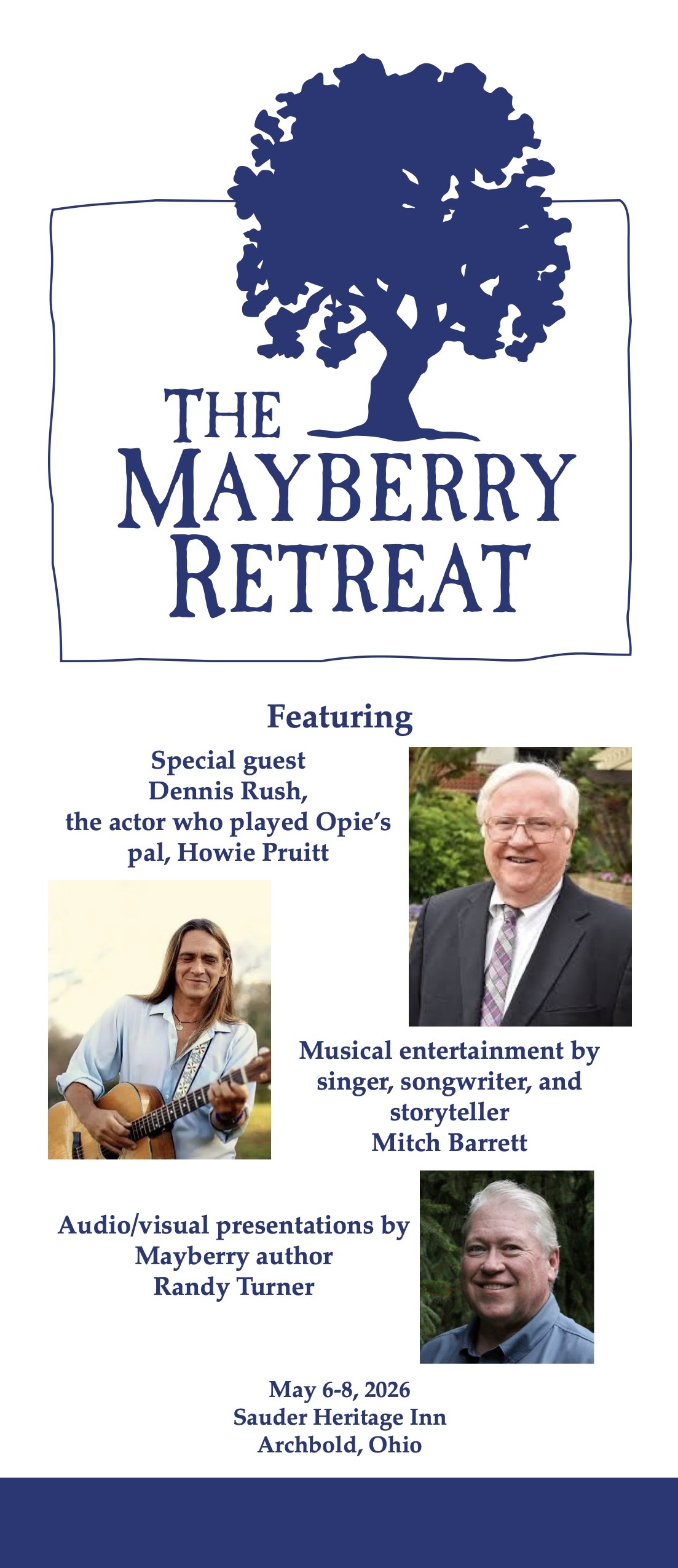 The retreat is an intimate gathering for discerning fans of The Andy Griffith Show who will enjoy activities centered solely on The Andy Griffith Show and entertainment in keeping with the spirit of the series. Think of it as all-Mayberry, all-the-time.